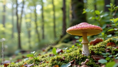 Red Mushroom in Mossy Forest Autumn Nature Scene
