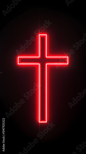 Red Neon Cross on Black Background, Minimalist Vector Illustration