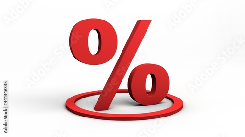 Red percentage symbol inside circle. 3D illustration. White neutral background. Isolated.