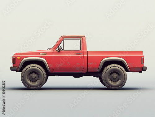 pickup, truck, red, side, view, minimalistic, rugged, classic, vehicle, illustration, three-dimensional, automotive, transportation, old, retro, dirt, wheel, design, monochrome, simple, style, car, vintage, isolated, profile, detailed, texture, landscape, modern, clean, artistic, creative, graphic, smooth, flat, background, empty, road, transport, machinery, engine, utility, work, offroad, hard-wearing, sturdy, functional, element