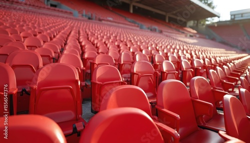 stadium, grandstand, arena, red, seat, chair, sport, tribune, football, soccer, background, empty, plastic, neat, orderly, row, angle, blurred, bright, direction, colours, facing, side, image, visible, spectator, event, competition, championship, tournament, game, match, audience, gathering, fan, public, daylight, sunlight, sunny, vibrant, concert, concert hall, live