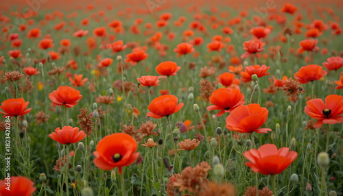 Red poppies in a poppies field. Remembrance or armistice day