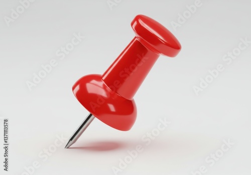 Red pushpin with glossy surface and detailed texture minimal design and sharp focus isolated on white background