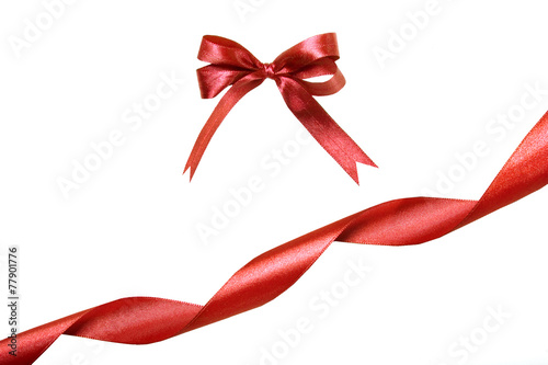 Red ribbon and bow.. Isolated on the white background