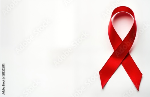Red ribbon symbol on white background for aids awareness. International campaign for health, support. Awareness event. Visual aid for HIV-AIDS campaign. Support for people affected by illness. Hope,