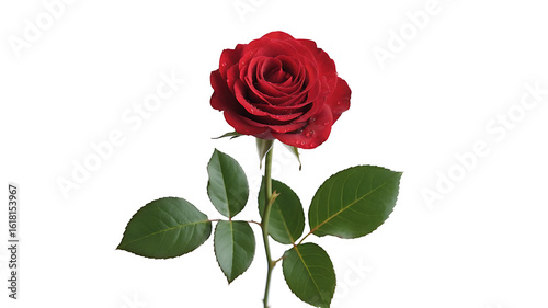 rose, red, flower, bloom, stem, leaf, green, nature, botany, plant, flora, garden, romantic, love, beauty, fragrance, single, isolated, white, background, cut, fresh, delicate, velvet, symbol, romance, passion, gift, celebration, anniversary, valentine, wedding, spring, summer