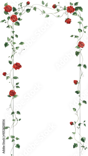 rose, vine, frame, border, red, floral, flower, nature, romantic, wedding, love, garden, green, leaf, foliage, elegant, vintage, classic, design, element, decoration, background, pattern, illustration, graphic, clip art, art, clip art, digital artwork, digital illustration, graphic design, wallpaper, banner, invitation, card, scrapbook