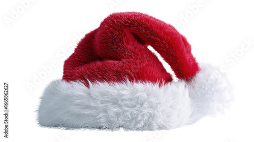 Red Santa hat with white fur trim, perfect for holiday celebrations and festive events.