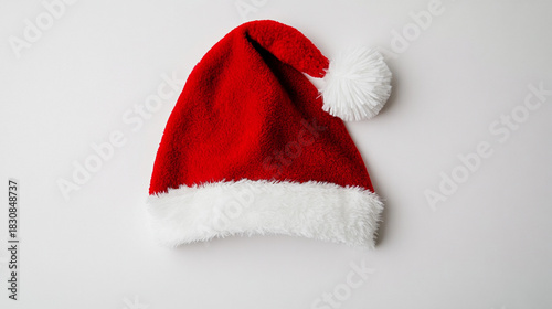 santa, hat, christmas, red, holiday, festive, celebration, winter, december, claus, tradition, accessory, apparel, fabric, textile, soft, fuzzy, pom-pom, trim, fur, season, greeting, joy, merry, spirit