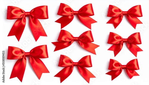 Red satin bow ribbon scroll isolated on white background with clipping path