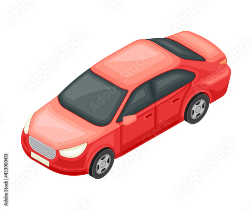 Red Sedan or Saloon as Passenger Car and Urban Transport Isometric Vector Illustration