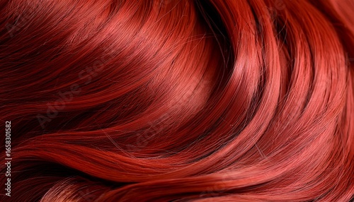red shiny wavy hair texture with vibrant red hair color and smooth silky strands creating luxurious and healthy look