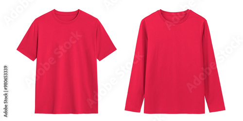 Red short sleeve t shirt and red long sleeve t shirt on white background