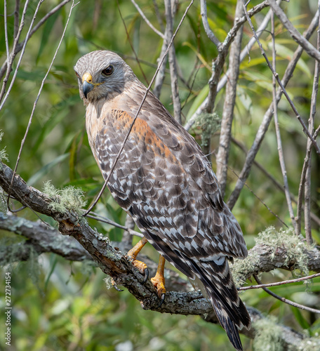 Red shouldered hawk perched on a branch