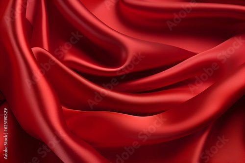 Red silky fabric close up. Fabric texture of natural silk or other textile material. Valentine day background. Generated ai
