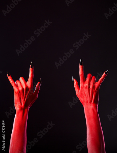 devil, red, hand, hand, nail, halloween, heavy, metal, rock, punk, signs, symbol, rocker, horn, creepy, scarey, skittish, horror, sharp, black, daemon, demonic, dark, evil, holiday, mystic, weird, horn, magic, music, power, show, male, female, people, gesture, death, nightmare, finger, paranormal, skin, hell, ghoul, fantasy, monster, studio shot, background, grisly, stretch
