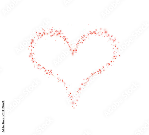 Red star trail in the shape of a heart. Shimmering dust flying and leaving behind a heart-shaped trail. Bright dust particles glow with the special festive light of Christmas. PNG.