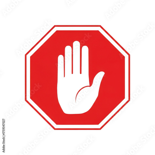 Red stop hand octagon sign graphic isolated on transparent background