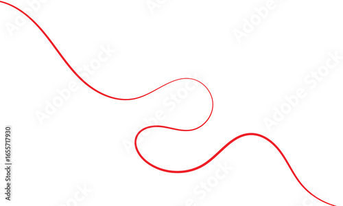 Red thread isolates on a white background. Red thread looped in a circle form, symbolizing vector. Line of red yarn, long red thread .Vector illustration EPS 10 .