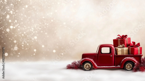 Red Toy Truck Delivering Wrapped Gifts for Festive Christmas Theme