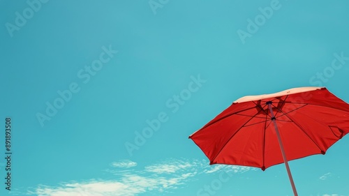 umbrella, sky, blue, red, sunny, clear, day, outdoors, weather, shade, summer, bright, parasol, sunshade, protection, scenic, beautiful, vacation, nature, calmness, peaceful, no, cloud, simplicity, minimalist, daytime, relaxation, horizon, open, vibrant, colours, contrast, calm, fresh, air, summer, natural, light, leisure, serene, idylli, skyward, high-coloured, crisp, atmospheric, background, copy space