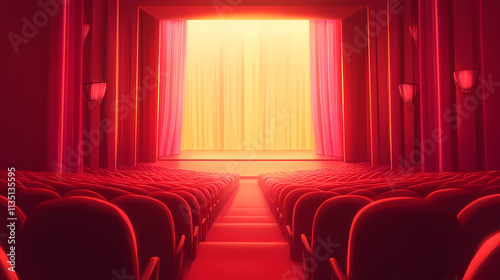 red, velvet, curtain, curtain, image, motion picture, theatre, stage, illustration