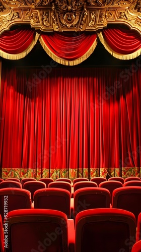 theatre, stage, curtain, red, velvet, seat, empty, performance, audience, show, art, drama, music, entertainment, gold, design, interior, architecture, building, culture, classic, luxury, dark, light, shadow, pattern, texture