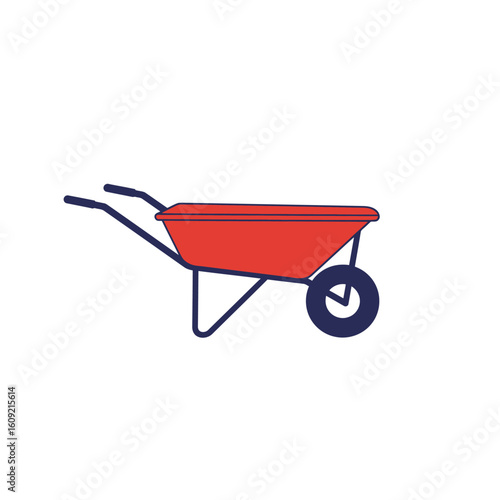wheelbarrow, red, blue, garden, tool, equipment, cart, construction, farming, agriculture, manual, labor, work, transport, carry, load, vector, illustration, graphic, flat, design, icon, symbol, object, isolated, simple, clean, modern, style, gardening, yard, metal, plastic, handle, wheel, frame, support, container, push, pull, material, heavy, duty, robust, hard-wearing, utility