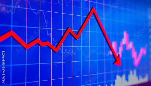 Red zigzag line depicting market downturn on a blue stock chart background, analysis, downturn