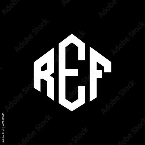 REF letter logo design with polygon shape. REF polygon and cube shape logo design. REF hexagon vector logo template white and black colors. REF monogram, business and real estate logo.