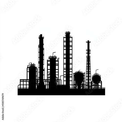 industrial complex, industrial plant, black-and-white, architecture, illustration, silhouette, bulldozer, building, industry, refinery, complex, factory, isolate, machine, simple, black, plant, solid, flat, oil, bw, isolated, industrial