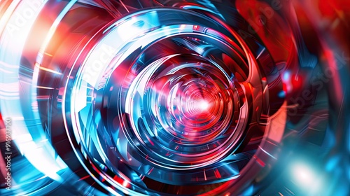 refractive interlocking circles, abstract, red white and blue, glowing, blur