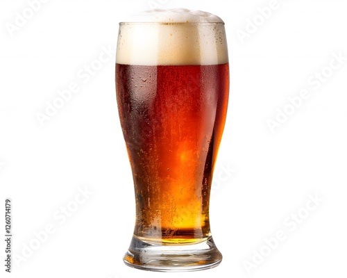 Refreshing Cold Beer in Glass, Frothy Head, Amber Ale