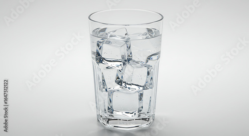 Refreshing Glass of Water Filled with Ice Cubes on a Clean White Background, a Simple Illustration of a Thirst Quenching
