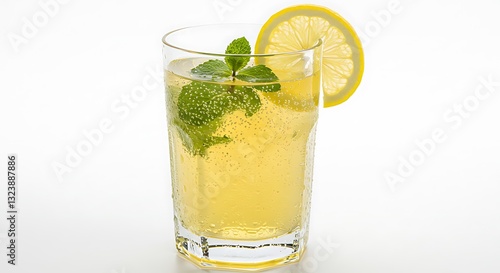 Refreshing Lemonade Glass with Mint and Lemon Slice on White Background
