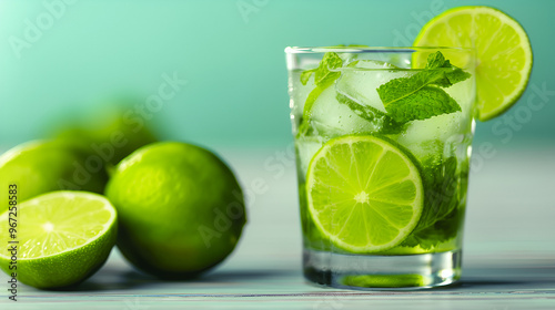 refreshing, mojito, drink, lime, cocktail, lemon, glasses, cold, ice, fruit, water, alcohol, juice, mint, green, fresh, citrous, beverage, isolated, white, slice, cool, refreshment, summer, lemonade, food