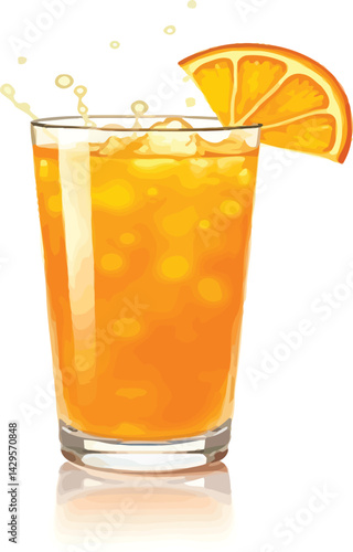 Refreshing orange juice with ice cubes and slice for healthy drink and summer beverage illustration design