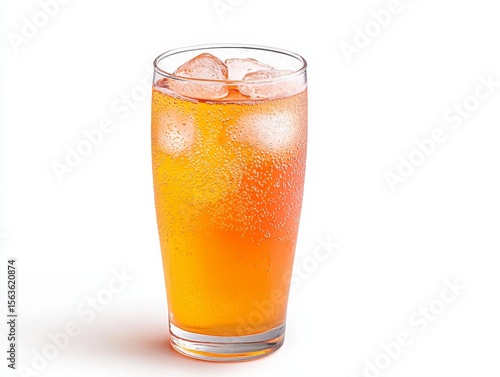 Refreshing orange soda with ice cool and fizzy summer beverage ice