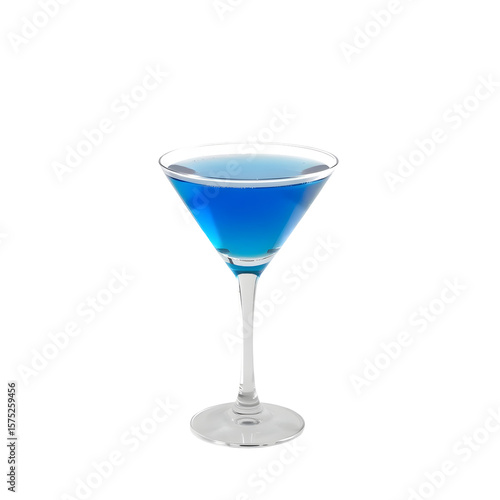 Refreshing Simple Elegant Blue Liquid Cocktail Drink In Martini Glass isolated on transparent background