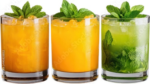 Refreshing summer cocktails with vibrant mint leaves over ice showcasing tropical flavors and thirst-quenching appeal that delivers enjoyment and relaxation captured with clarity