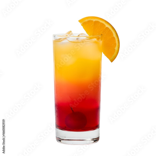 cocktail, drink, alcoholic, refreshing, layered, orange, red, yellow, cherry, summer, party, bar, beverage, isolated, cut-out, studio, rendering, three-dimensional, tropical, vacation, holiday, glasses, ice, fruit, garnish, alcohol, eatery, nightlife, celebration, fun, mixer, liqueur, spirit, fruity, sweet, juice, relaxation, leisure