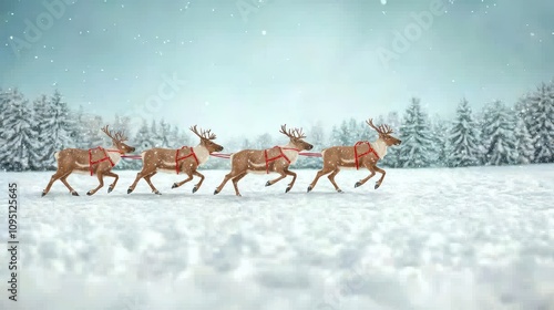 Reindeer Sleigh Ride Magical Christmas Winter Snow Scene