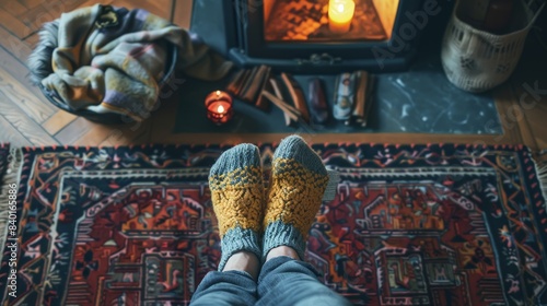 relaxed feet on a cozy rug, exuding warmth and comfort in a homely setting.