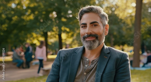 transgender, trans, hispanic, male, middle-aged, park, greenery, relaxation, leisure, sunlight, beard, casual attire, nature, peaceful, tree, foliage, community, public, social, gathering, serene, portrait, smiling, seated, afternoon, sunshine, weekend, calmness, urban, environment, people, fashion, attire, diverse, background, lifestyle, day, sitting, ambience, atmosphere, recreational, enjoyment, friendship