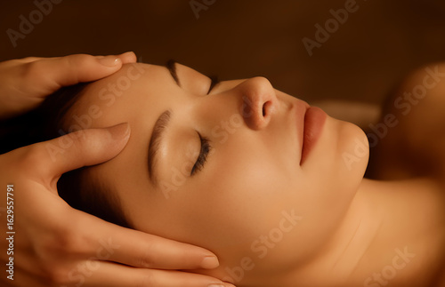 Relaxing head massage therapy in luxurious calming spa environment