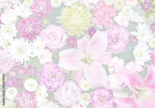 Relief of Lilies, lisianthus and chrysanthemums. Floral backbround. 3D illustration. 3D render