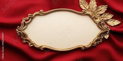 religious postcard design, elaborate church-themed pentecost postcard with golden gothic frame, red silk background, and a central space for writing blessings