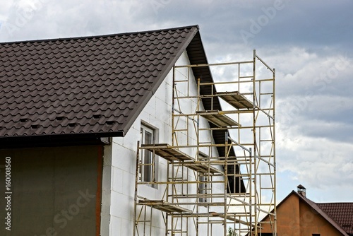 house, grey, building, repair, forest, tube, construction, bungalow, dacha, private, building, brown, sunny, daytime, sky, cloud, architecture, window, roof tile, in plaster, modern, design, style, yard, chimney, chimney, browse, facades, beautiful, horizontal