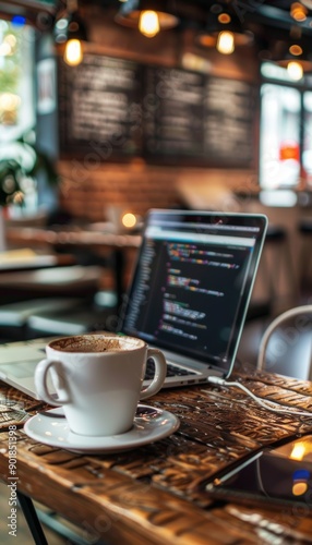 software, developer, remote, working, technology, laptop, hot drink, coding, programming, workspace, professional, relaxed, productivity, creative, cosy, notebook, tech, lifestyle, design, freelance, digital, work, modern, code, office, sharpened, hand, typing, development, information technology, meeting, job, cyberspace, innovation, business, workplace, wireless, mobile, trendy, stylish, collaboration