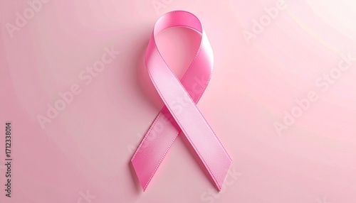 Render a pink awareness ribbon looped with downward ends, placed on a dark textured surface with subtle reflections and debris, isolated in soft lighting, emphasizing solidarity and emotional symbolis